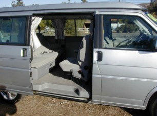 2003 Certified Used Volkswagen Eurovan Murrieta Volkswagen Eurovans are better than ever! If you think that Chrysler made the first true minivan, you'd be wrong. That credit actually goes to Volkswagen, which has had a true mini van as far back as the early '50s. Back then, it was very much under-powered but today's Eurovan has the peppy VR6 power plant that's normally found in the Jetta and GTI. Don't get too excited about running down to look at the all-new 2006 Volkswagen Eurovan at your local Volkswagen dealer. VW stopped selling the Eurovan in the United States due to lack of sales. But the people who bought them, loved them. Perhaps that's why you rarely see any used Eurovans on the market. Murrieta Volkswagen currently has four used and certified Eurovans in different configurations. In fact, the Volkswagen certified used vehicle program is the only way to buy a used Volkswagen. It gets a 112-point vehicle inspection, and if it fails one point, it goes off to the auction. Dealers are very strict when it comes to the vehicle inspection. When a vehicle passes, the new owner gets a two-year/24,000-mile warranty that covers just about everything (except wear and maintenance items). The new owner is enrolled in the 24-hour roadside assistance program. Buyers are also given the option of a great credit program, with financing as low as 2.9 percent (depending on your credit and the vehicle you have chosen). While power was the Achilles heel of the old Eurovan, my test vehicle proved very responsive and entered the freeway with ease. The Volkswagen Eurovan has some unique features, such as comfortable front seats with multiple adjustments, a dash set up for the driver and instrumentation in blue and red lighting (red for the most important items). The 2.8-liter V6 produces 201 horsepower and 181 pound foot of torque, backed by a four-speed, electronically controlled automatic transmission with overdrive. If driven properly, it should get 17 miles per gallon in the city and 20 miles per gallon on the open road. What really stands out in the Eurovan is space. It can accommodate up to seven occupants, including the driver. Another unique feature is the rear seating. There's a nice couch that flips down into a bed and two captain's chairs that face to the rear for a conversation area. There's also a table (for eating, writing or whatever) that flips down to provide even more space. You can enter the Eurovan through the front doors, a sliding passenger side door or the rear hatch. You may find the rear hatch a little heavy at first, then the gas cylinders kick in and up it goes (closing it is a lot easier). Once you open the rear door, there's a nice cloth-covered rear shelf to keep plastic bags in place. Plus, you can flip down the seat back for a very nice, comfortable bed for those cat naps along the open road. There are curtains that secure all the windows except the front windshield. You also get a great sound system that includes an AM/FM/stereo cassette and multi-CD player. My test vehicle had a silver exterior with gray interior, alloy wheels and not a scratch on it. This unit has the Weekender package, which is pretty much what I explained earlier. You can opt for the full Camper Package, if you can find one used. But this Weekender is perfect for San Diego - throw in your own cooler, a change of clothes, some food and you're set to head out to the beach, football game or whatever. I must warn you that these Eurovans are not cheap. But you do get a lot for your money. So head up to Murrieta Volkswagen to check out the four Eurovans on the lot and see if these fun mobiles fit your driving needs! |