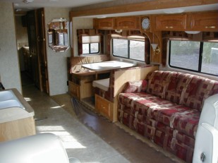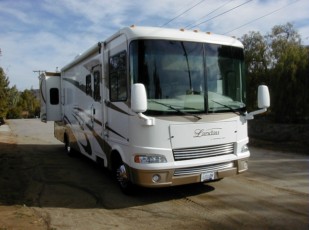 2006 Georgie Boy Landau La Mesa RV now offers Georgie Boy motor homes La Mesa RV just took on the Georgie Boy motor coach line. If you're in the market for a motor home, you need to stop by La Mesa RV to check out the Georgie Boy fine line of coaches. I tested the 31-foot Landau with the side door entrance. This entrance enhances the coach's floor plan because you don't accidentally hit your head on the overhead television when entering at the passenger seat entrance. Plus, the floor plan can be laid out to accommodate a party of friends. Powered by a Ford 6.8-liter V8 gas engine, this coach handles the hills of Alpine with little effort and you can also tow a small vehicle or trailer. The backup camera is well positioned in the dash for easy viewing and the large outside mirrors can be adjusted manually and electrically to any desired position. This model has very comfortable seating for the driver and passenger, with all controls within easy reach of the driver. Even though the 27-inch color TV is mounted in the roof between the driver and passenger, there's still plenty of visibility, plus a track-mounted curtain for maximum privacy when parked. The outstanding sound system (AM/FM/ in-dash CD player and MP3 compatible) can be controlled from the driver's seat. The radio even gets the weather channel, a great feature for cross-country travelers. You don't normally find a driver's door in anything other than a C class motor home, but Georgie Boy has put in a driver's door for a couple of reasons. You won't disturb anyone when fueling the coach or just going outside for set up or light maintenance. It's a nice feature, but it takes a little getting used to stepping on the flip up step and grabbing the assist rails. After a couple of times, I became very comfortable with it. The living area is well appointed with a love seat that converts into a very comfortable bed. There's also get a four-seat dining area. The kitchen is a great workstation with a double-door refrigerator, microwave oven, three-bunner stove top with lighted hood, Welbeck Birch cabinets and linoleum flooring in the kitchen and bathroom. The bathroom is big enough for just about anyone and despite the Queen size bed, there's plenty of room to move around in the bedroom. The Landau comes with two slide outs - one in the front living area and the other in the rear bedroom. Once extended, the rear slider turns your home on wheels into a very comfortable living area. You don't hear a lot about safety in motor homes but Georgie Boy is quite safety conscious. It has an override for the slide outs, which means you must push two buttons at the same time to extend or retract the slide outs and the switches are mounted high enough that the little people in your family can't reach the switches. Other safety features are the daytime running lights and fog lights, which could light up an air field. The handling and braking is superb. There's an outside shower system, locking gas door, cable and it's satellite ready. In fact, the list of features is longer than the space I have to devote to this motorhome. If you're in the market for a motorhome (that you may be able to finance as a second home, check with your taxman), the Georgie Boy is a great choice. There are different lengths, floor plans and power plants to choose from. La Mesa RV has a coach to fit just about anyone's budget and lifestyle requirements. Check out La Mesa RV a www.lamesarv.com. |