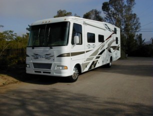 2007 Damon Outlaw 36-foot motor home is traveling in style Here is the way I'd go to Sturgis, the biggest motorcycle event in the US. First, I'd send out my Harley for a good detail. Then I'd head down to my local Harley store to stock up on cool Harley clothes. I would then head over to 10,000 RV in Kearny Mesa or San Marcos (check out its website for directions at www.10000rv.com) to pick up a 2007 Damon Outlaw 36-foot motor home powered by Ford. Why an Outlaw? When you see one, you'll understand. You can load passengers, put the Harley in the rear garage area, latch it down and head to Sturgis in style and comfort. Once you get to the hotel, unload your freshly detailed Harley, climb into your road gear and make your presence known on the Sturgis strip. Sure, you're going to catch a lot of static for being a trailer queen but you will sleep a lot better than those who road out to Sturgis the hard way and camp on the dirt. The Damon Outlaw is a motorhome with all the comforts of home, including microwave, stove top, full refrigerator, air conditioning and heating - all controlled by a handheld device with a garage. There's a very comfortable couch that transforms into an airbed. The booth style table is not only comfy but has plenty of room for four adults. For entertainment, there's a 27-inch flat screen TV with a VHS/DVD player with remote and speakers throughout the coach. You can have a TV in the upper bedroom for privacy and you can even hook up a TV in the cargo area for those late night repairs on your motorcycle or quad racer. Damon hasn't forgotten anything. It also has an external gas filling station, an external shower center with hot and cold water as well as plenty of under body storage. Lowering the counter balanced rear ramp to get your toys out is so easy you can do it yourself. There is a toolbox on the wall for storing tools. You can close off the rear garage area from the rest of the coach and you don't even know you're hauling toys. The Damon Outlaw is 36 feet long and is mounted on a Ford chassis. It comes standard with automatic levelers that have touch pad controls located at the driver dash area. The large 22.5 tires help with the stability along with vibration dampers. Getting in the coach is a snap, thanks to a two-step electric step that opens and closes with the door (main power on or off). Look at the side shot of the Outlaw to see how the roof raises towards the rear for added height in the garage area. It has a very quiet Onan 5.5KW generator, plus 60-amp converter with outlets inside and outside. There are three interior treatment styles; although select the wood and there's only honey maple to choose from. One thing I found strange is that there's no way to climb on top of the Outlaw - no outside or inside ladder. Seems as if Damon wasted a good spot for motor sports viewing. But if that is the worst thing, I can live with that. How well did it drive? I had to speak to the Pauma Valley Lions Club at Pala Casino and the drive was on a very narrow and winding road. The Outlaw handled all obstacles like a pro. Acceleration is good and braking is even better. It handles like a small van and visibility is the best, with big front windows and no TV hanging down in the middle to block the view. The large outside mirrors are easy to adjust electrically. The seats are manually controlled but are very big and comfortable. The dash is simple, with just enough gauges to keep drivers informed. I really enjoyed my time in the Outlaw. The price is over $120,000, which isn't bad. When I asked the sales folks at 10,000 RV what it really costs, they said that they would sell it for under $100,000, The only problem is these coaches are flying off the lot at that price. So if you have a need for a motorhome with a garage, I would definitely look at the Damon Outlaw 36-footer. What a blast! All I need now is time to go to Sturgis! Next week, I'll review a vehicle from Bob Baker Volkswagen Subaru. |