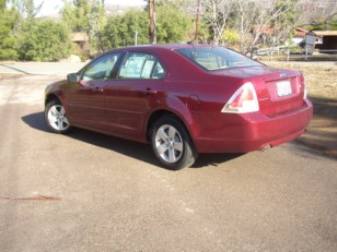 2007 Ford Fusion SE is just fine with a V6 engine. There's been a lot of grumbling from automotive journalists who think that Ford should have put V8s in more vehicles. I was one of those journalists until I picked up a four-door 2007 Ford Fusion SE with the 3.0-liter V6 with 221 horsepower and 205 pound/foot of torque. But to my surprise, this Fusion has enough get-up-and-go to burn the front tires on hard acceleration. Boy, was I impressed. The second thing that impressed me was how much room I had in the front seat. I had to slide the seat forward to be comfortable with the steering wheel and floor pedals. I also like the way it rides down the freeway - smooth as silk and when it did hit a pothole, it was a minimal experience. The backseat is just as roomy and comfortable, plus the center console in the backseat is a nice touch. The interior is pretty basic, with large gauges for the driver plus an information center. Just push a button on the dash and the information appears at the base of the speedometer. The steering wheel has cruise and audio controls for a safer hands-on approach to driving. The audio system is a base unit but once turned up, it really shakes the interior with tons of bass. The standard AM/FM/six-CD changer in-dash can be upgraded to Sirius Radio and it can play an MP3 player. The 2007 Ford Fusion looks just like the '06, but some creature comforts are added. It has a DVD-based navigation system, all-wheel drive (available for the first time on the SE and SEL V6 models). Also included on the SE (the car I tested) are 16-inch aluminum wheels, fog lights, heated outside mirrors and puddle lamps (so you don't go ankle deep in a puddle just outside your door - a nice touch). It also has an electrochromatic inside mirror with a compass. The front passenger seat folds flat on the SE and SEL models. The fuel mileage is good, with 20 miles per gallon in the city and 28 miles per gallon on the open road. If you're looking for even better mileage, try the 2.3-liter four-cylinder engine with 160 horsepower and 156 foot/pound of torque. It gets 23 MPG in the city and 31 MPG on the open road (I haven't driven the four-cylinder model). Another first for this year is the all-wheel drive on the V6 SE and SEL models. They only lose a mile or two in fuel mileage, so if you live on a dirt road or like to head up to the snow country, then AWD may be just the ticket for you. A feature that isn't new for '07 is the Fusion's look. It looks so good it won the JD Powers Award for "Most Appealing Midsize Car." If you need trunk space, the Fusion has it. I had to pick up 10 cases of coffee mugs and they all fit in the trunk except for three cases, which sat in the back seat with ease. Since I had to load and unload the car myself, I found the trunk and rear door opening perfect. One other thing that helps the Fusion look so good is its color palette. My Fusion came with a beautiful "merlot metallic" exterior and a "camel" leather interior (leather was the only option on my test vehicle). When it comes to safety, Fusion comes pretty well loaded with front airbags, side airbags, curtain airbags, a standard perimeter alarm system and child lock systems. This Ford Fusion came from North County Ford, just off Vista Way and Route 78. North County Ford has a large selection of Fusions to choose from, so I recommend you stop by to check one out. I really like the Fusion. It reminds me of NASCAR racing, plus it offers plenty of comfort. If transmissions are important to you, be careful when picking the engine. You get a six-speed automatic on the V6 model or a four-cylinder model with either five-speed manual or automatic. Drive them all and make your choice. My tester was less than $23,000, before tax and license. That's pretty cool! . . |